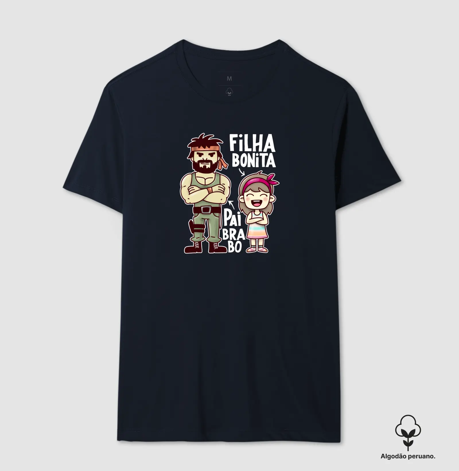 FILHA BONITA, PAI BRABO" – Quer presentear seu pai de uma maneira especial e divertida? Nossa nova estampa é a escolha perfeita! Ideal para os pais protetores e cheios de atitude, essa camiseta celebra a conexão única entre pai e filha. Com um design exclusivo e uma mensagem cheia de orgulho, é o presente perfeito para mostrar o quanto você valoriza o amor e a proteção dele. Faça seu pai sorrir com estilo!