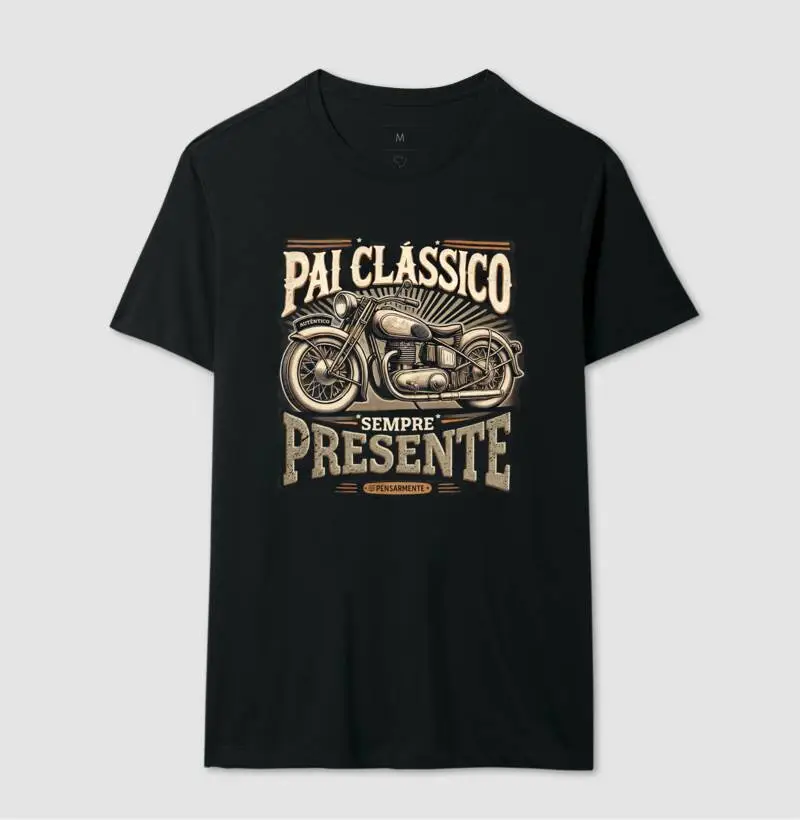 A estampa "Pai Clássico, Sempre Presente" é uma homenagem aos pais que são verdadeiros ícones de estilo e força. Com inspiração vintage, ela simboliza a robustez e o legado eterno dos pais que deixam sua marca por onde passam. É uma celebração do espírito inabalável e da presença marcante dos pais que se destacam pela autenticidade e imponência, refletindo uma tradição de valor e respeito.