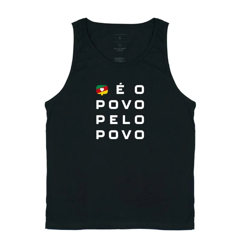 "É O POVO PELO POVO" Esta frase vai além das palavras; é uma ação concreta em prol dos gaúchos afetados pela tragédia das enchentes. Todo o lucro gerado pela venda desta camiseta será integralmente destinado à doação para o estado, ajudando a reconstruir vidas e comunidades. Acompanhe o progresso e a prestação de contas através de nossas redes sociais. Juntos, fazemos a diferença! ( https://www.vakinha.com.br/vaquinha/a-maior-campanha-solidaria-do-rs/ )