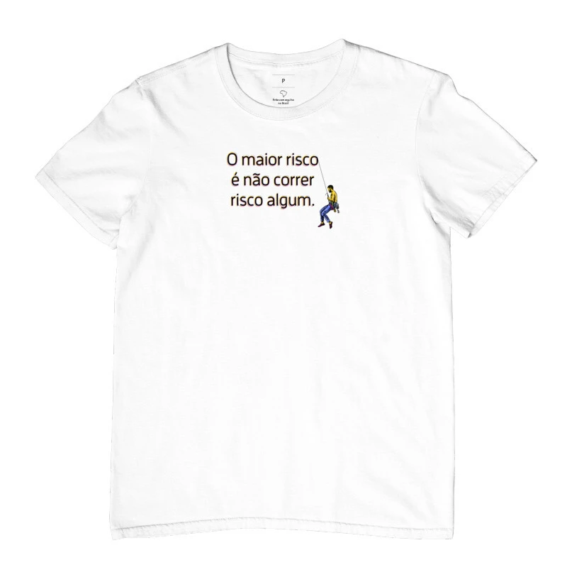 O maior risco é não correr risco algum. Passar a vida em branco, sem um pouco de adrenalina ou coragem para crescer e vencer te afasta das conquistas. Arrisque-se quando seu feeling despertar para uma grande vitória. E se jogue. A começar usando essa estampa feita especialmente para você.