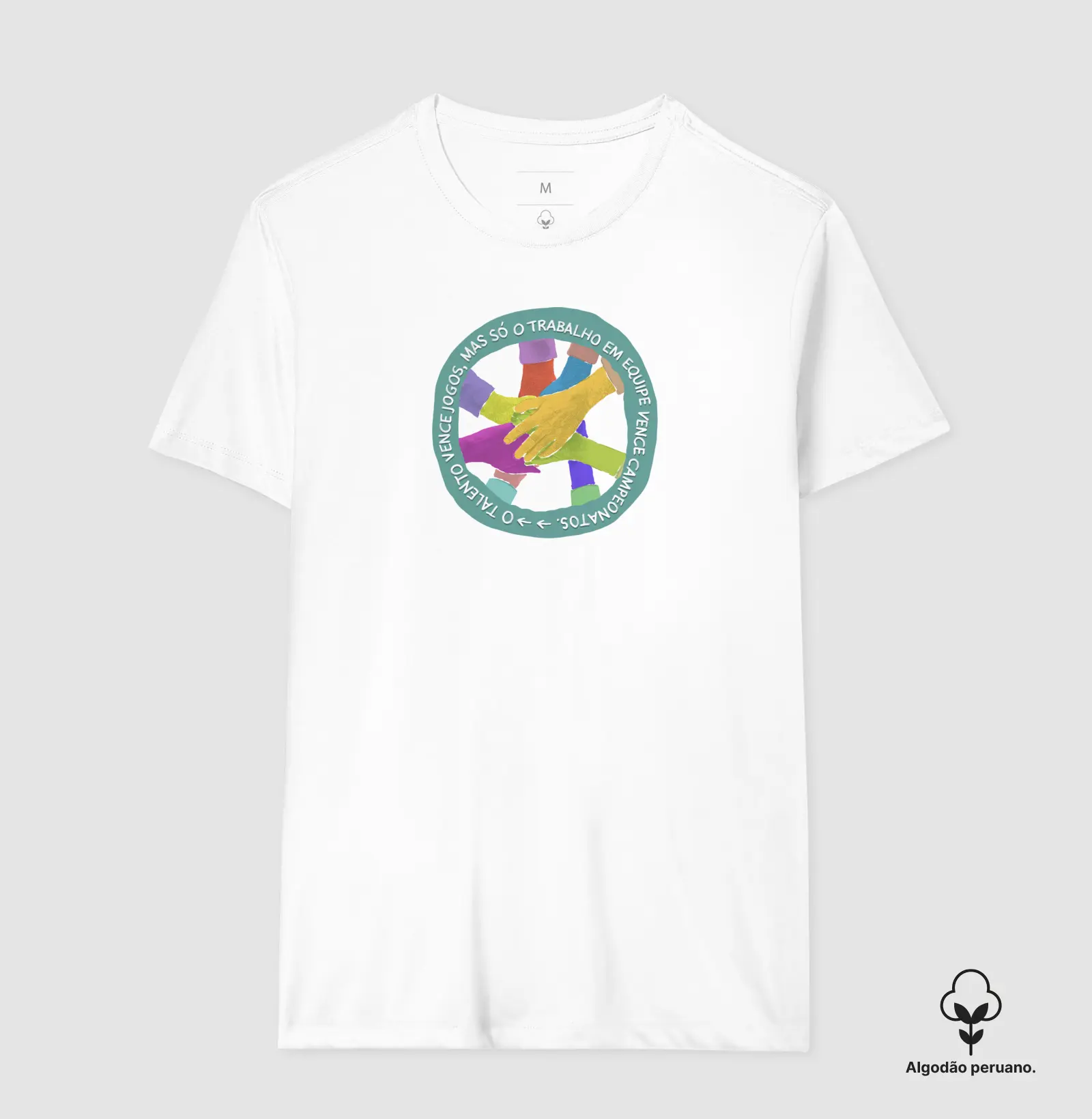O talento vence jogos, mas só o trabalho em equipe vence campeonatos. Se junte ao time Pensarmente e vença na vida com pensamentos positivos e muito trabalho. Escolha uma das opções de cores de camiseta e vista essa estampa.